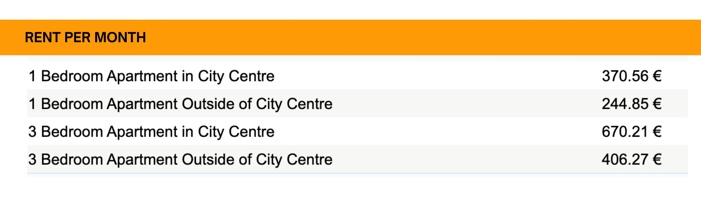 - The estimated monthly costs for a single person are 410.3€, excluding rent.